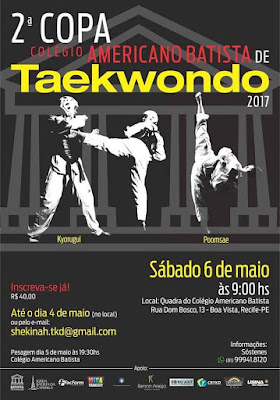 O evento, organizado pelo professor Antônio Sóstenes, sob a supervisão da Federação Pernambucana de Taekwondo, será realizado no dia 06 de Maio (Sábado), com previsão de início para as 09:00h e terá como sede a quadra poli-esportiva do Colégio Americano Batista.